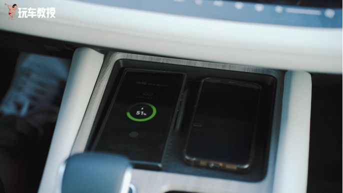 前排储物空间也让人满意,特别是提供了两个放手机的位置,其中左侧还是支持无线充电的,用起来很方便。