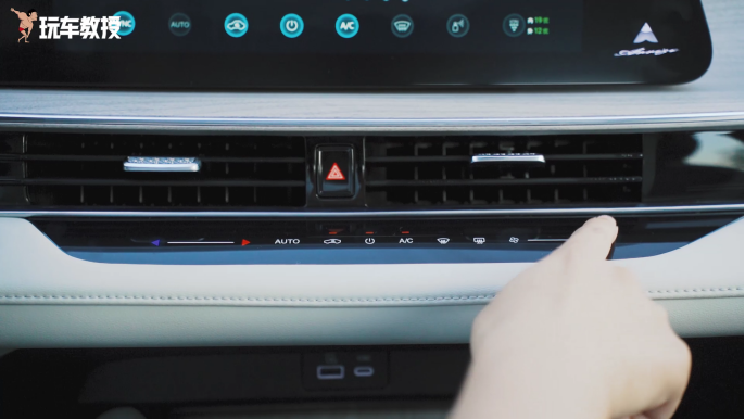 空调区域放在了屏幕下方,虽然是触摸控制,但胜在位置顺手,点击功能后中控也会同步打开空调界面,操作起来还是挺便利的。