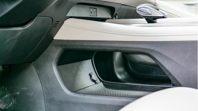 另外,在挡把台下面还掏空了一大块,所以这也是一个很好的储物空间。