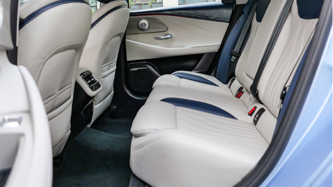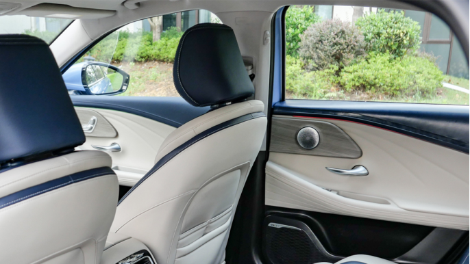 除了空间够大,后排值得一提的还有座椅舒适性,可以看到座椅都很柔软,坐着确实有点“沙发”的感觉了。