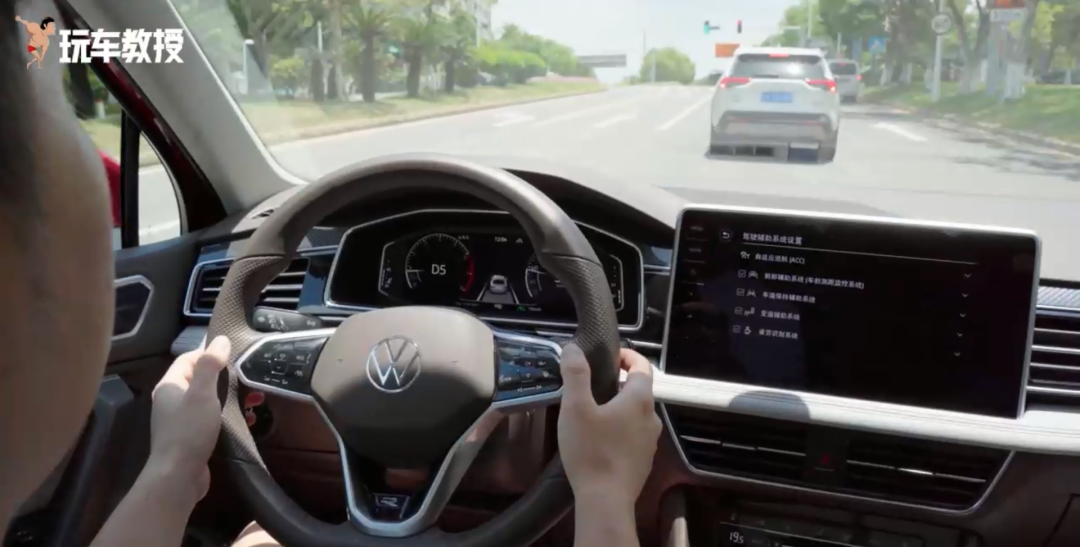 而这些功能在教授实际测试中,不仅高效智能,还非常人性化,靠着车辆智能辅助驾驶系统可以轻松完成一整段路,这期间可以解放我们双手和双脚,减轻长途驾驶的疲劳感,当然,为了保证安全,我们的手还是要搭在方向盘上,脚搭在刹车上。