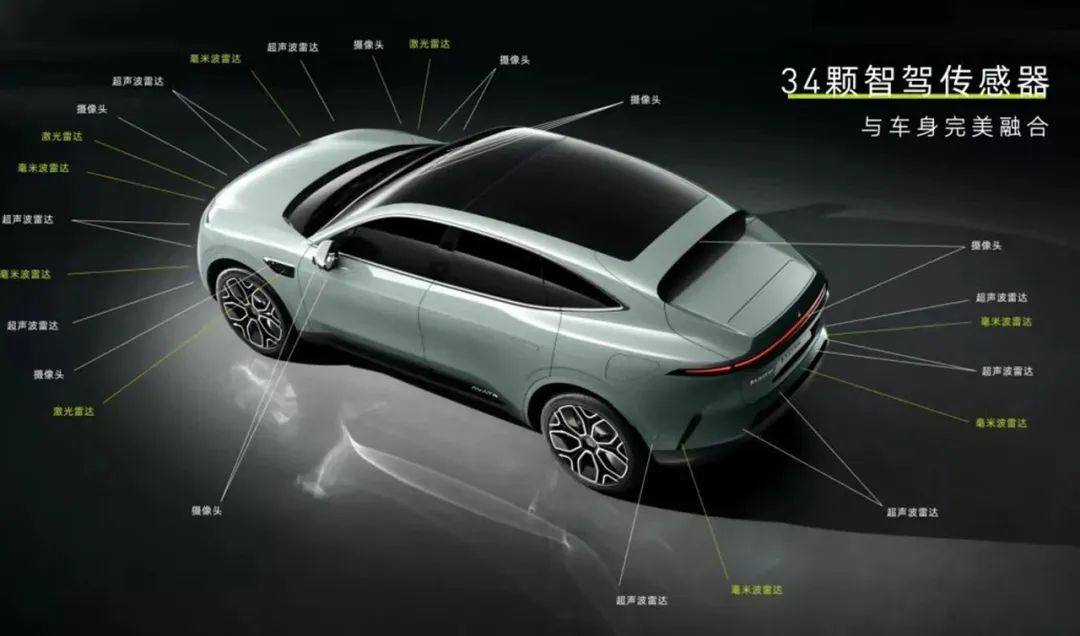 在这方面,阿维塔11则全系标配AVATRUST 超感系统及AVATRUTH超算系统,总算力达到了领先的400TOPS,这意味着每款配置车型都搭载了34颗传感器,包括3颗半固态激光雷达、6颗毫米波雷达、12颗超声波雷达、13颗高清摄像头;另外在计算平台、算法等方面,也是全系统一标准。