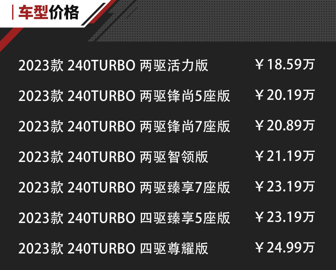 所以,在汇集闪耀的聚光灯下,9月28日,第六代CR-V正式在中国市场上市,新车率先面世的纯燃油版车型,共推出7款,售价为18.59-24.99万元,此次新车针对中国消费者的需求,专门为国内用户推出7座版本。