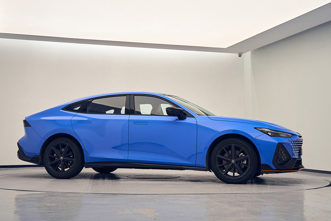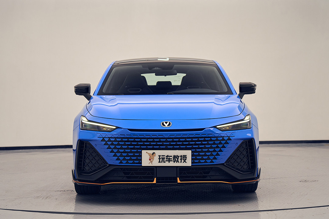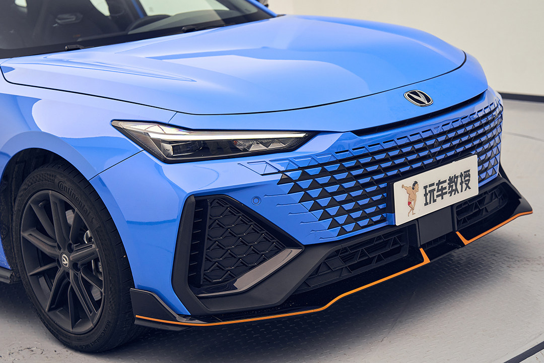 除此之外,让长安UNI-V在颜值方面广受好评的原因还有非常清爽且抓人眼球的蓝色车漆和与之搭配的橙色饰条。