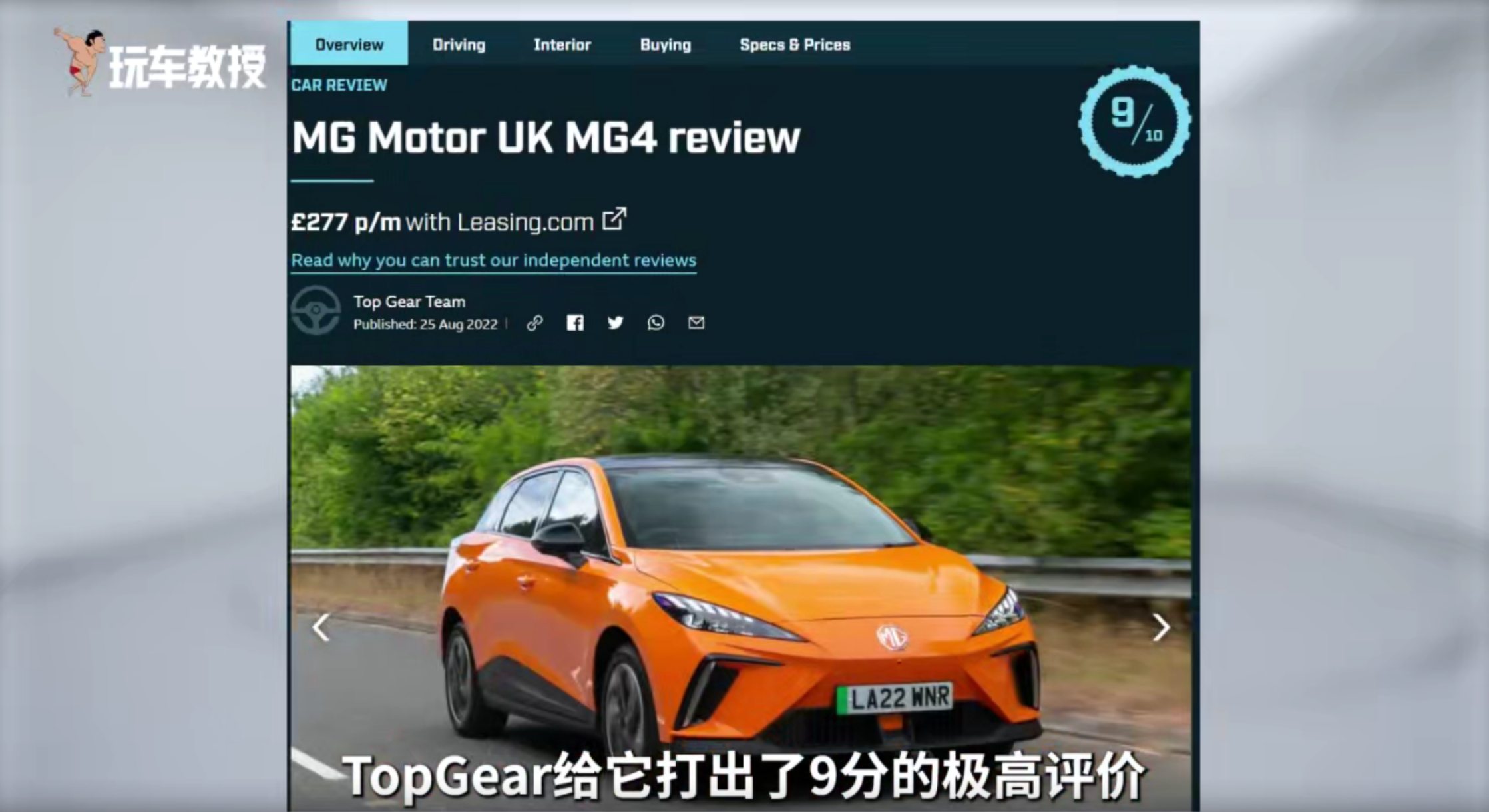 在一份来自TopGear的新能源榜单当中,来自中国的纯电动汽车MG4(国内版本为“MG MULAN”)的评分高达9分。