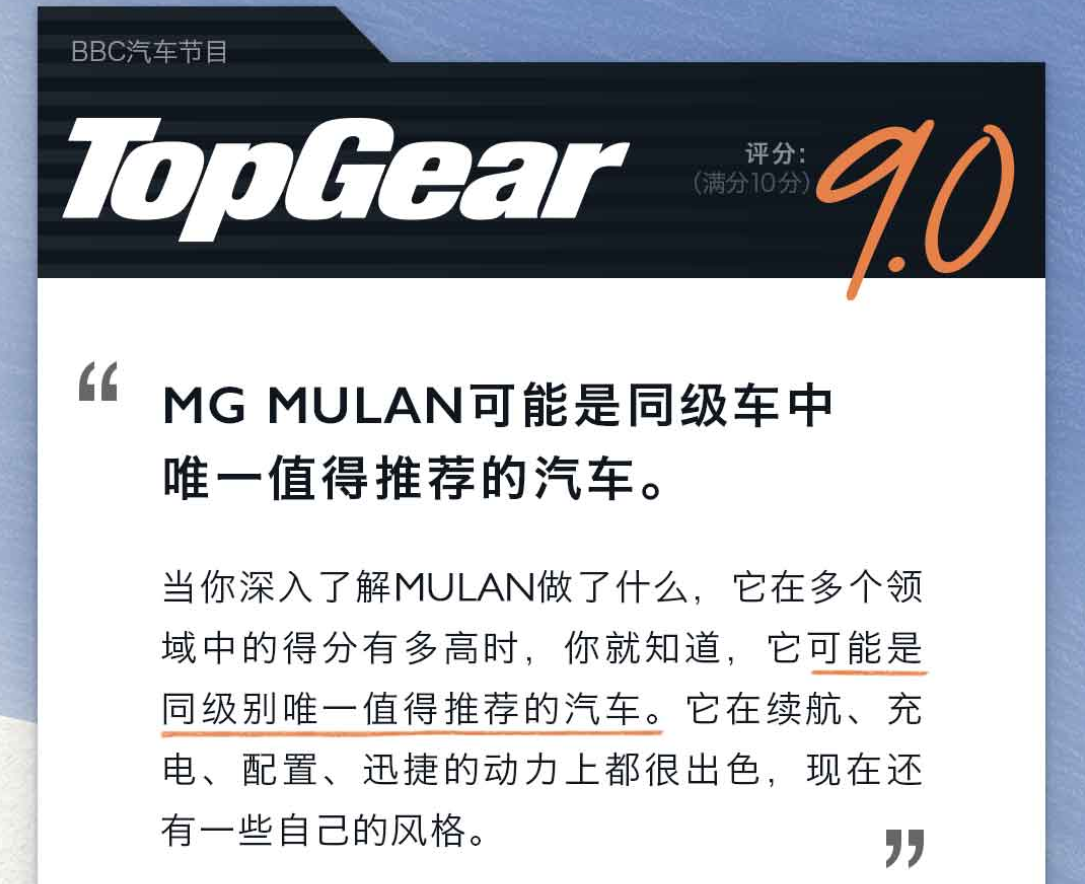那么,MG MULAN到底有什么魅力,能够征服早已阅车无数的TopGear汽车评委们呢?据了解,MG MULAN的续航表现、配置和设计都得到了TopGear的赞赏,但它的操控表现更是极为亮眼。