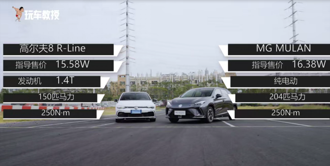 为了了解MG MULAN的操控表现到底有多优秀,教授不仅将它开上了赛道,并且还为它找来了一位来自德系运动标杆选手——大众高尔夫进行同场竞技。