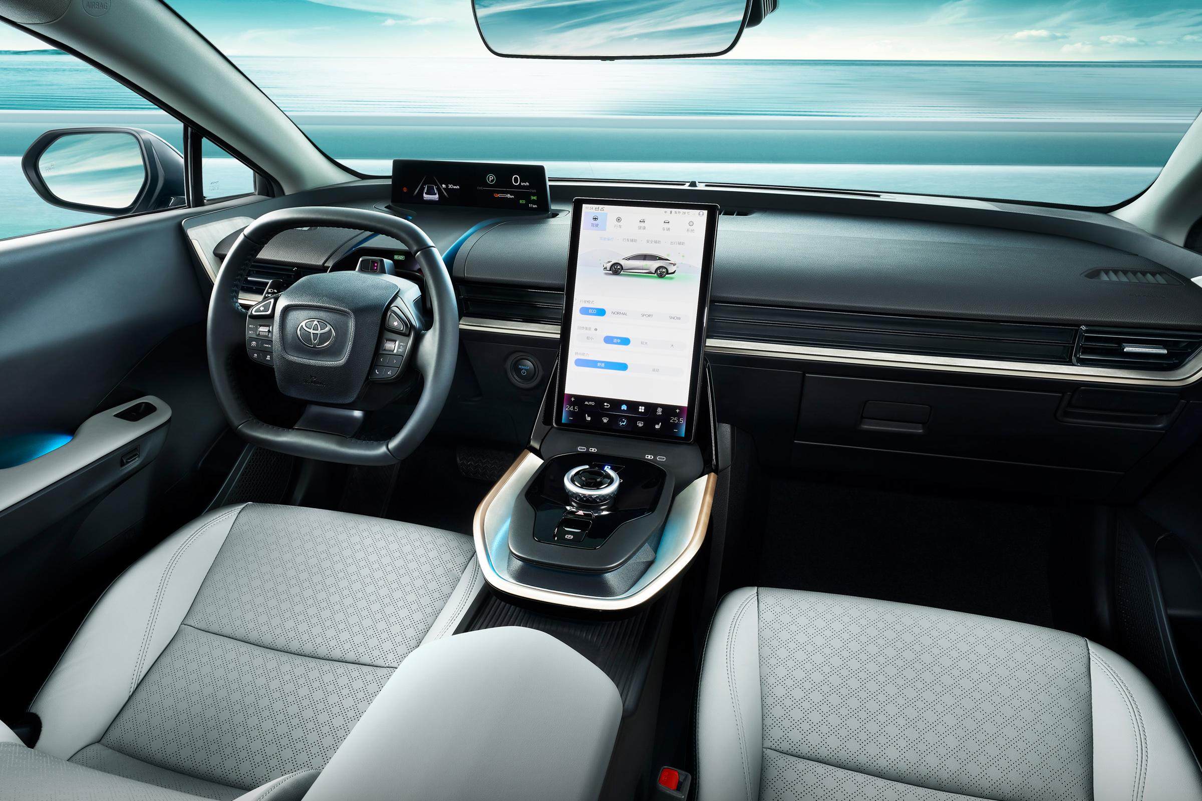 丰田bZ3的内饰没有直接把bZ4X那套拿过来用,竖向的中控屏,独立的操作岛台,上下平底三幅式方向盘,总体虽然不是特别豪华,但符合当下新能源车的设计趋势。