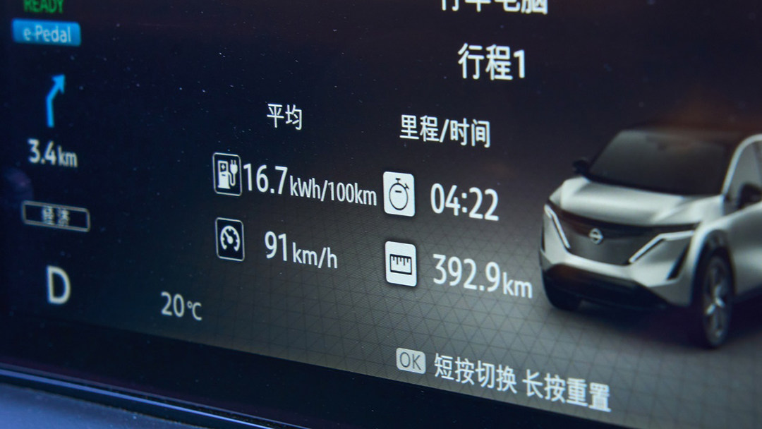 在城市行驶过程中,ARIYA艾睿雅的表显综合能耗为11.6kWh/100km;对于一款纯电SUV来说,这样的表现十分优秀;对于这款电池容量达到90kWh的SUV来说,这意味着它在城市里的续航里程能够轻松突破600km!