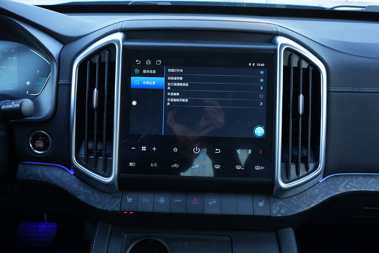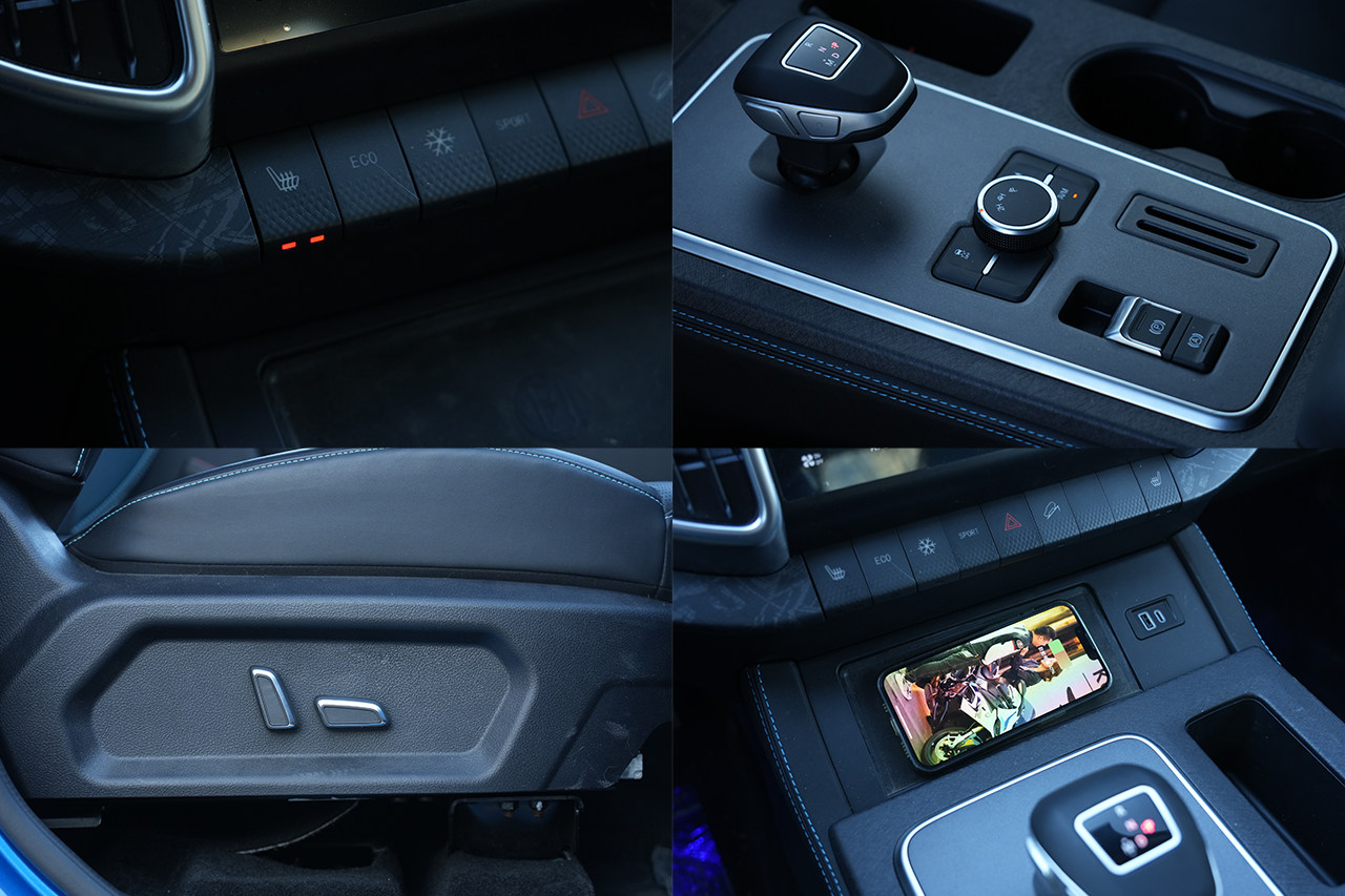 其它配置方面它表现非常丰富,配备了前排座椅加热、全景影像、无钥匙进入、前排座椅电动调节、自动头灯、电子手刹、陡坡缓降、无线充电、行车记录、氛围灯等等,完全向乘用车看齐。