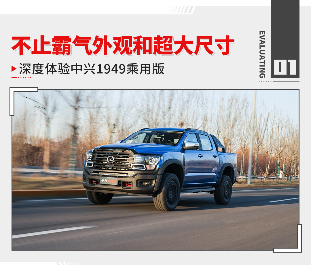 教授平时摸惯了乘用车,第一次见到这条中兴1949的时候着实吓了一跳,作为全尺寸皮卡,它乘用版车型的长宽高达到了5393×2045×1965mm,车身宽度已经超过了2m,而且乘用版采用了高底盘,所以它的车身高度也逼近2m,这种尺寸上带来的高大感受非常直接。