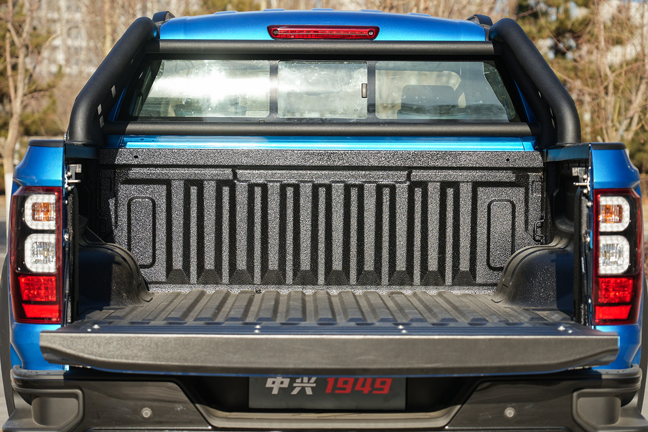 车身结构是中兴1949很大的一个亮点,非承载式车身、高强度两纵七横的满焊车架,车身强度和扭转刚性都很有保障,这也就是为什么很多用户不仅会拿皮卡来拉货,也会拿去玩越野。