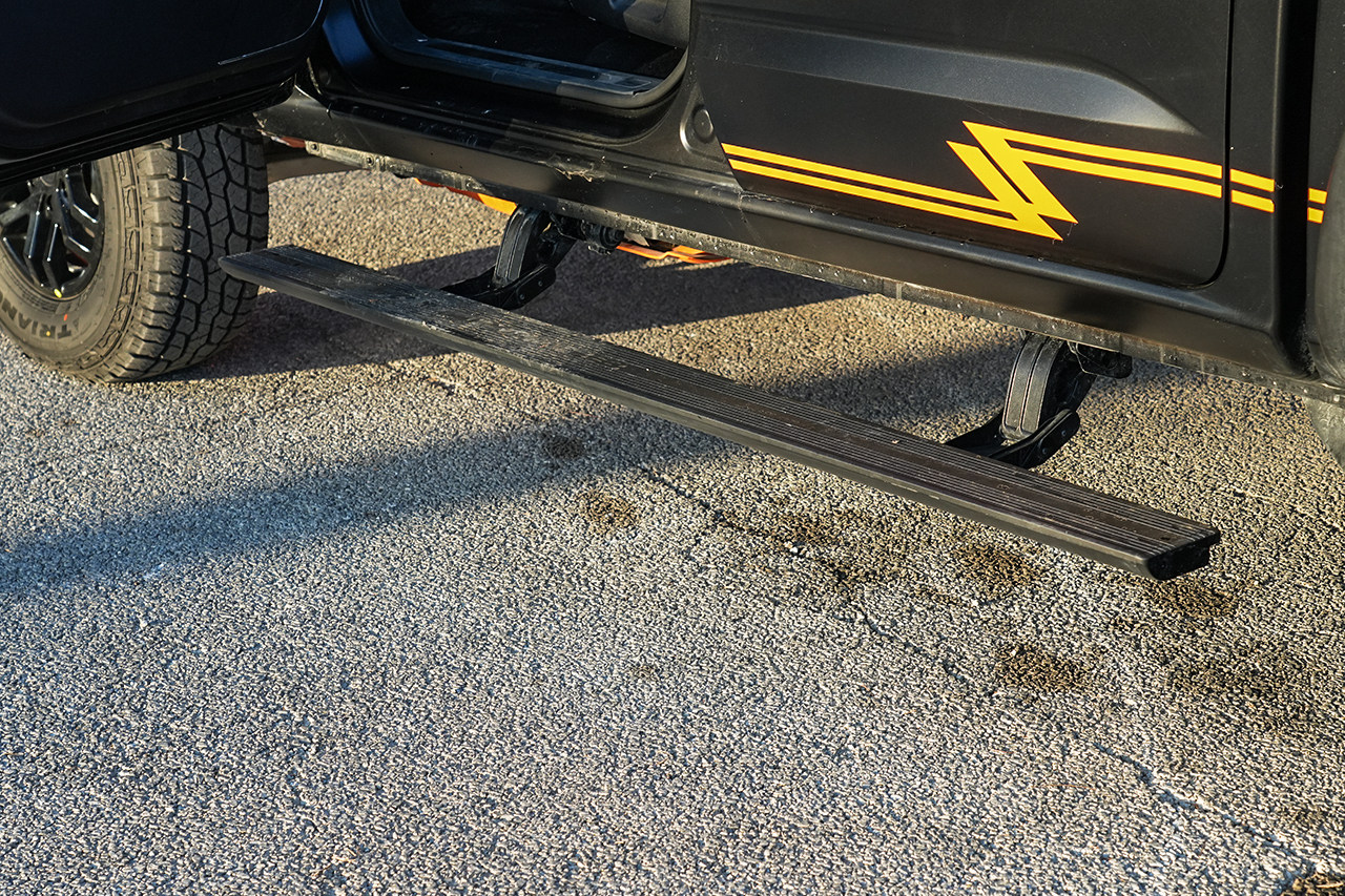 教授体验的这台内测车就选装了电动踏板以及来自科曼的氮气减震, 1986竞技版离地间隙很高,所以教授认为这套电动踏板还是挺有必要选上的,这套选装减震的感受稍后跟大家分享。