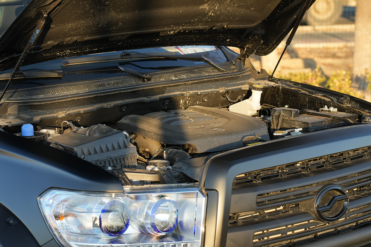 动力系统搭载了一台2.0T涡轮增压柴油发动机,最大功率122kW(166Ps),扭矩高达410Nm,面对装载、攀爬以及越野这些场景,柴油发动机的大扭矩会比汽油机更有优势。