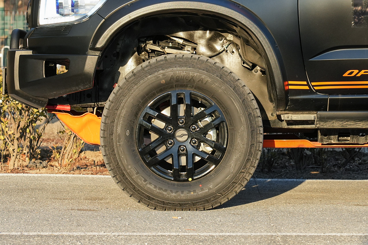 轮圈尺寸为17英寸,配备了比普通版车型更适合越野的AT宽胎,尺寸达到了285/70 R17。