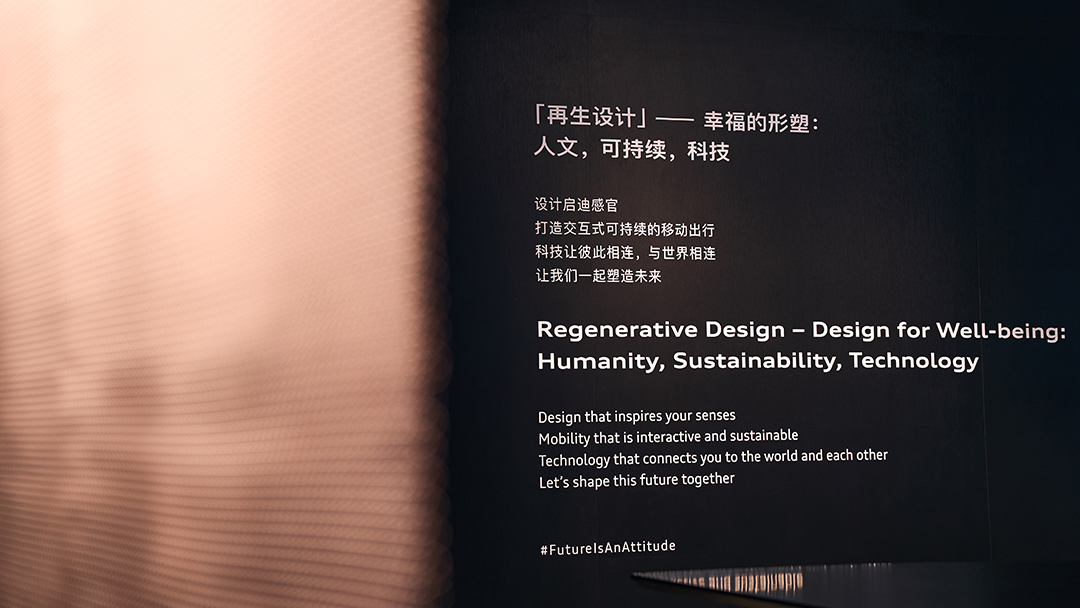 本次设计深圳,推出了“再生设计——幸福的形塑:人文、可持续、科技”的展会主题,而奥迪也结合着这个以环保为核心的主题向公众展现了对于可持续的未来高端出行的理念。