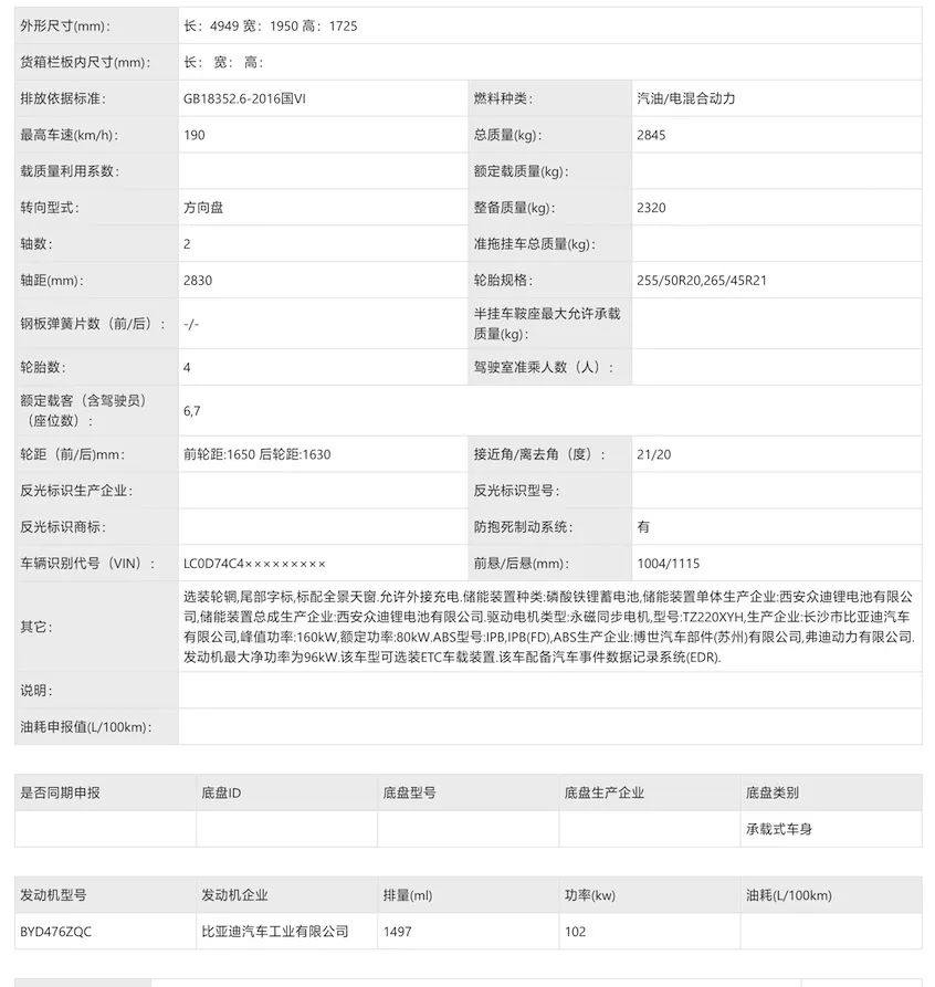 据工信部发布的信息显示,腾势N8申报了4种动力,分别为2种插混车型(DM-i、DM-p)和2种纯电车型(单电机前驱、双电机四驱)。