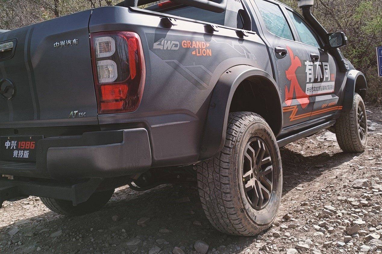 这次教授体验的中兴1986竞技版在越野方面则是更进一步,原厂就给用户标配了涉水喉、集沙杯、底盘护板、差速锁等越野装备,除此之外还有氮气减震、电动绞盘等配置提供选装,而且这台车的底盘相较于普通版1986而言是加宽处理过的。
