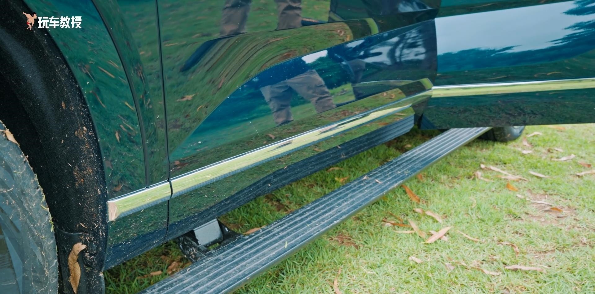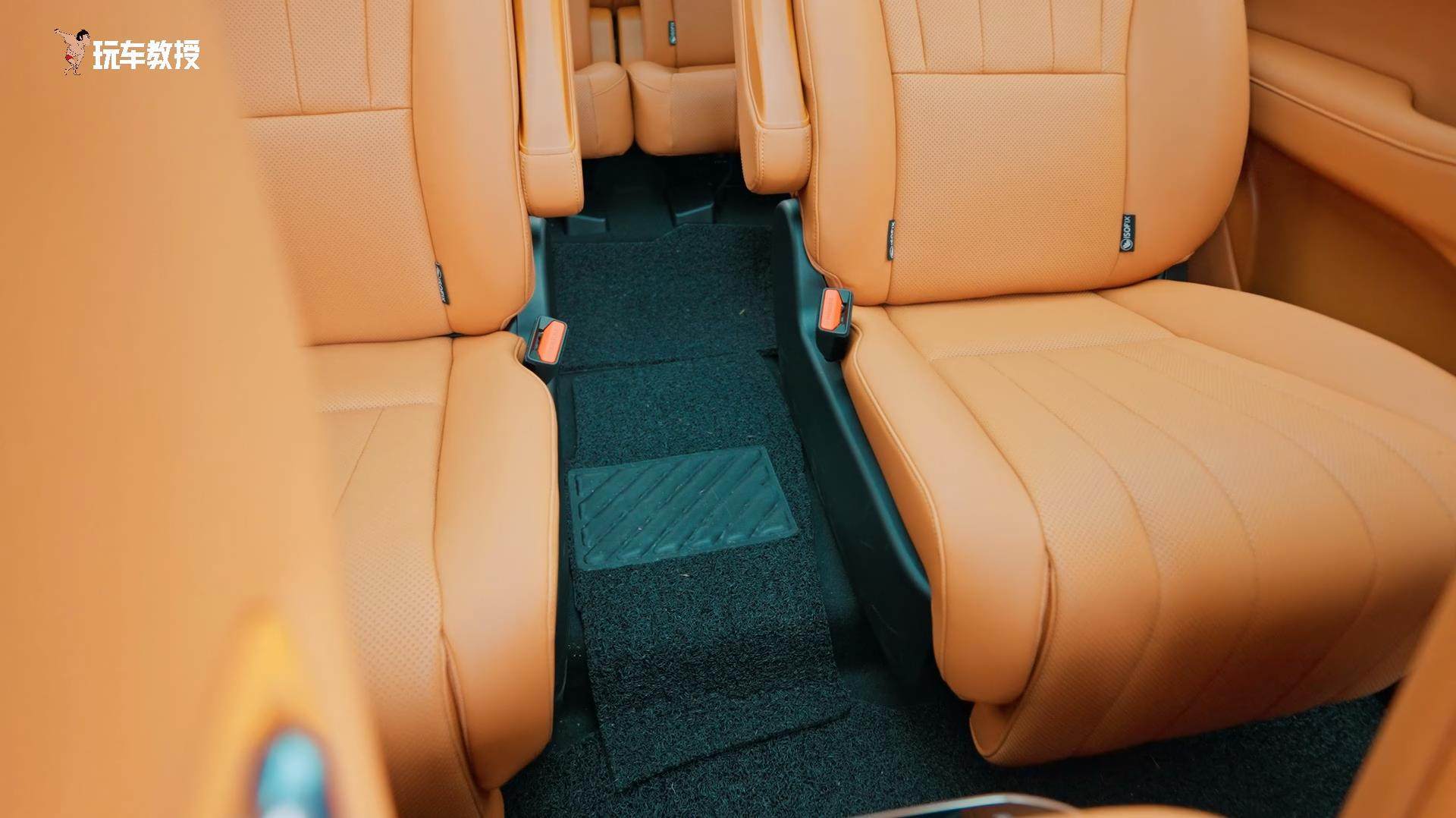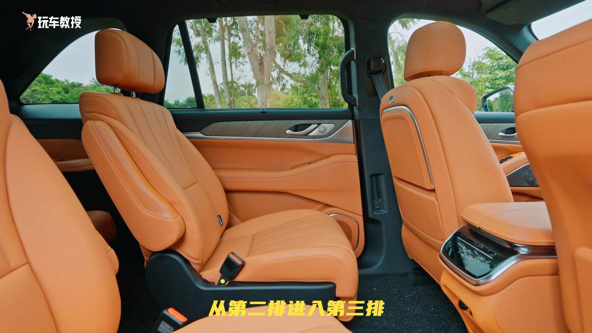 再来看魏牌蓝山对于老年人的关怀体现在什么方面。这是一台新能源SUV,这意味着它的地台高度相对MPV或轿车来说会更高一些,但魏牌蓝山配备了电动迎宾踏板,而且这块踏板非常宽大,老年人大多有腰部劳损问题,但要上下魏牌蓝山并不困难,踩着迎宾踏板,B柱位置有宽大的扶手,扶着这个扶手就能很自然,很轻易地进入二排座椅。如果二排座椅需要坐小朋友,得益于魏牌蓝山宽敞的过道,老人家很方便地就能从第二排直通第三排就坐。