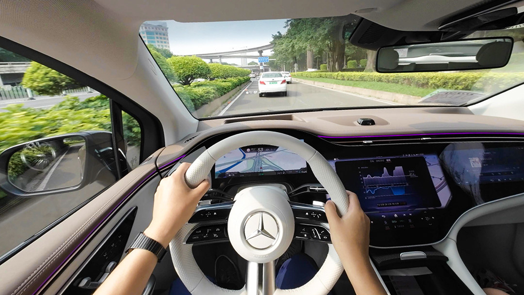 驾驶着全新EQE纯电SUV于广州繁忙的主干道穿梭,Dauto智能能量回收系统的存在让缓行变得如此平稳舒适。