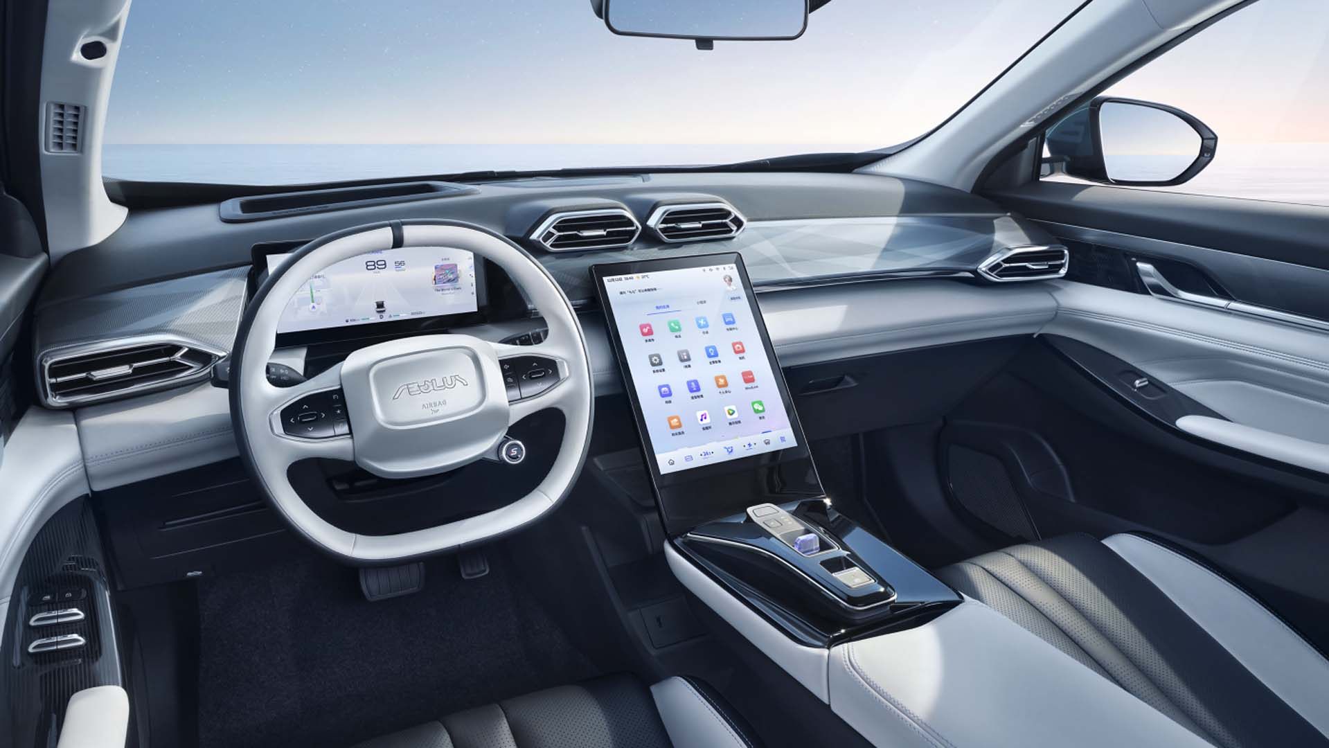 皓瀚的内饰设计偏向简洁、科技,从图中我们能从视觉上就感觉出车内的设计是很清爽的。整体采用浅色系撞色,简单的搭配营造出的感觉相当高级。两幅式多功能平底方向盘,加上全液晶仪表盘和悬浮式竖状中控屏,这都是现在的主流配置。车内的取消了较多的物理按键,功能基本集中到中控屏上,显得十分干净整洁。中控台上的配备四个菱形空调出风口,左右两侧一个,中控屏顶上两个,这都是比较传统的设计。