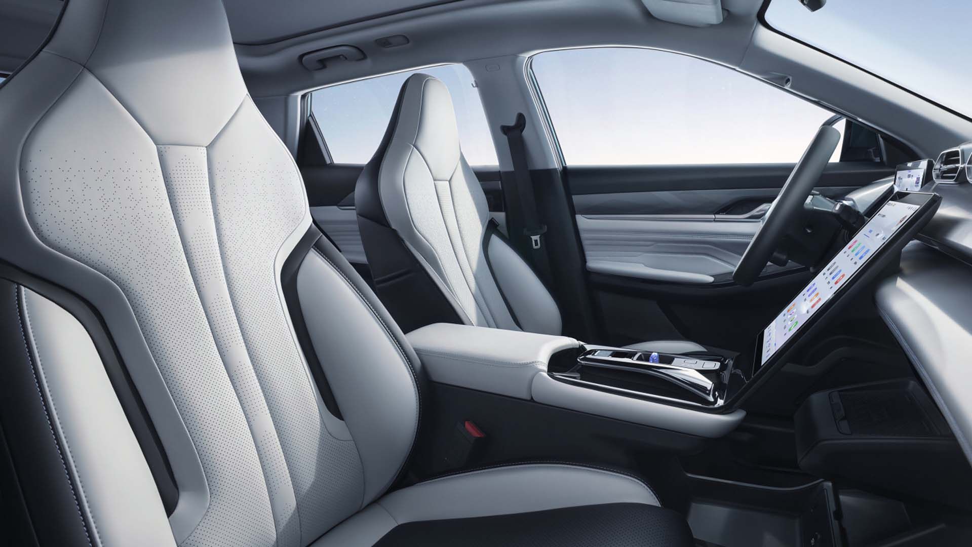 前脸在设计上有三种不同的中网(倒梯形格栅、无边界中网、封闭式中网)分别对应着三种不同动力的车型,配备主流的贯穿式LED大灯组、激进的进气格栅,这些配置更符合当下的新能源的风潮。