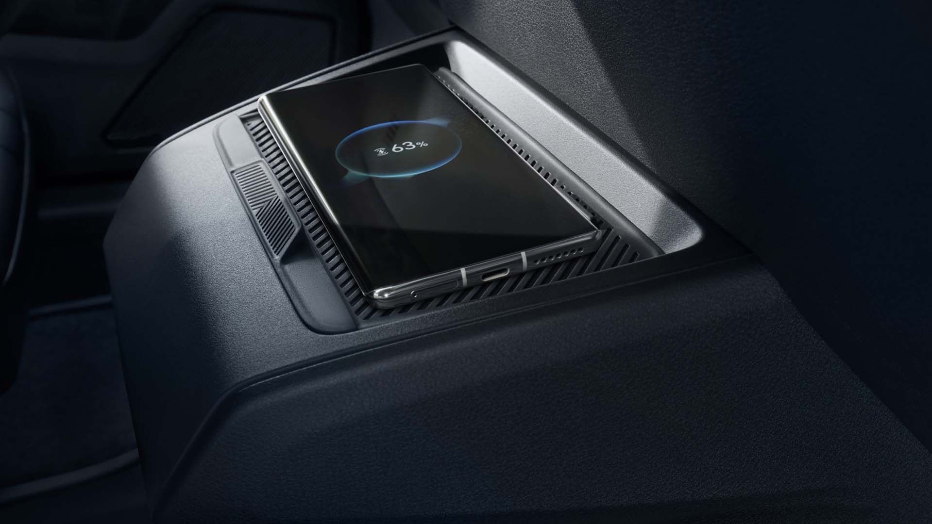 细节方面,我们也能看出车内的换挡采用拨杆式换挡,“兰花指”般换挡这种新式换挡结构也深得很多人得喜欢。另外,挡把区域前方还有着镂空设计,下有个小型储物槽。同时,车内还配备了无线充电面板,这些都是十分方便驾乘人员的细节设计。