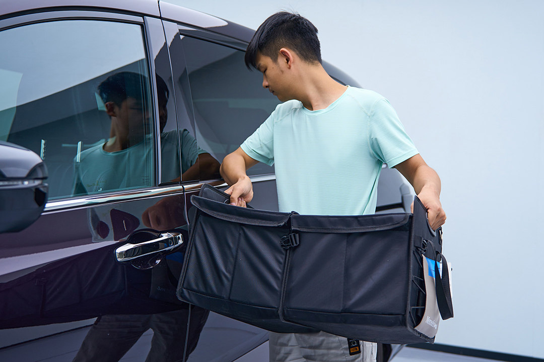 一拉、一提、一翻,便可将这座椅折叠收纳,变幻出超大全平储物空间模式、尾厢休憩垂钓模式等空间布局,进一步拓展了尾部空间的使用场景。
