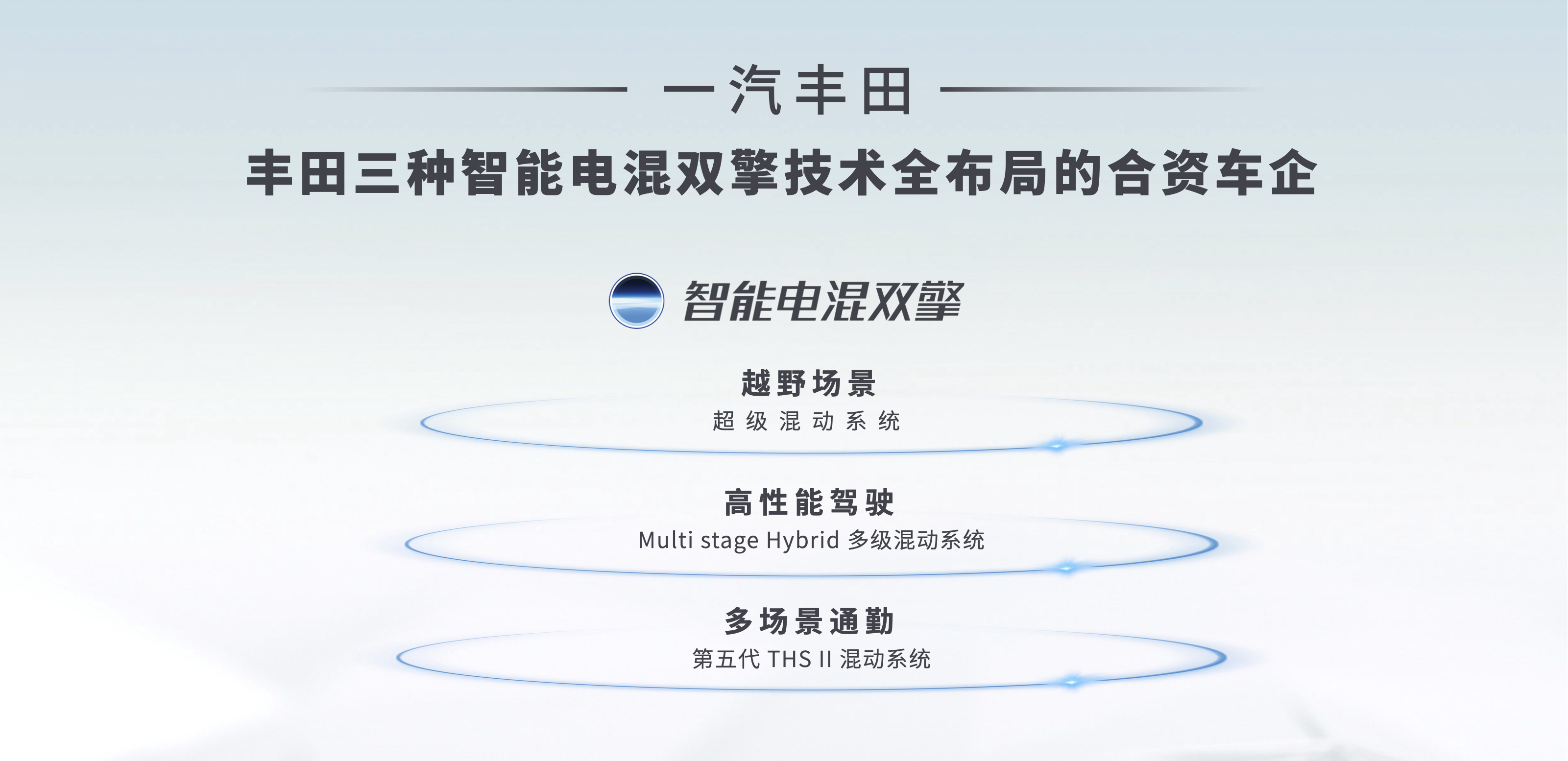 在未来出行的电动化布局上,一汽丰田始终致力于为用户打造高品质、无焦虑的出行体验。伴随全新皇冠和全新普拉多的回归,一汽丰田完成了包括侧重多场景通勤的THS Ⅱ混动系统、专为高性能车型打造的Multi stage Hybrid多级混动系统,以及兼顾越野、加速和环保性能的超级混动系统在内的三种智能电混双擎布局,成为名副其实的丰田混动技术代名词。