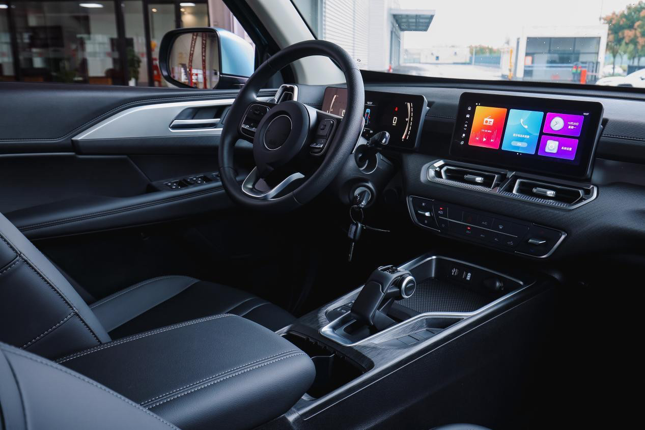 细节设计上,新车车姿抬高20mm,离地间隙最高达236mm,底盘通过性更强,车姿更威猛、更协调;低货台设计,货箱离地高度降低10mm,搬运货物更省力省时;更有同级唯一原厂货箱照明,无论是凌晨上货,还是晚市装卸运输,都保证货箱内清晰明亮,让装卸更安全高效。此外,自动挡全系标配10.25英寸高清大屏+倒车影像,流畅不卡顿;领航型搭载乘用车级车联网系统,可畅快体验智能语音、智能车控、智能导航、车载微信、抖音等服务功能。
