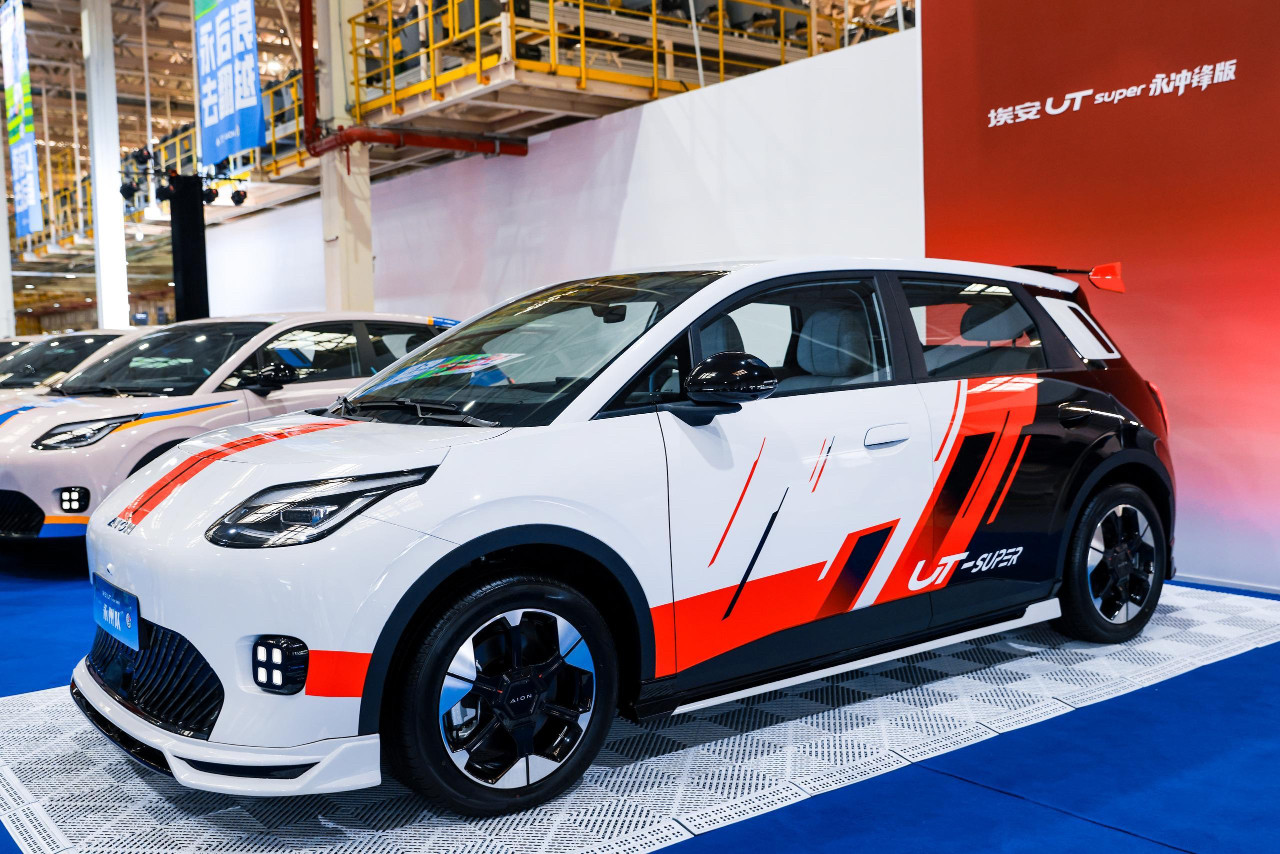 作为A0级纯电市场的“全能王”,埃安UT Super以四大硬核实力诠释“国民好车”的应有之义:5万级唯一可充可换可升级,搭载宁德时代巧克力换电技术,实现500公里续航与99秒极速换电;2750mm越级轴距带来“国民空间王”的越级享受;华为云车机让座舱秒变“电竞房”;540°全景影像与倒车防误踩系统构筑“国民避障王”的安全防线。“永冲锋”三个字,将这份产品力与永州队逆袭夺冠的热血精神深度融合,成为广汽埃安“为国民造好车”理念的生动注脚。