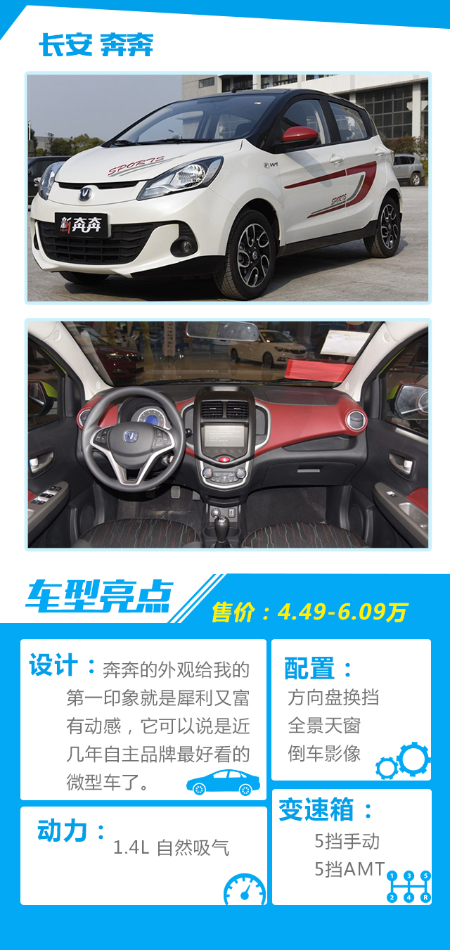 点评:提到奔奔,小编先要说的就是它的配置,就连全景天窗和换挡拨片这些高端配置都有在高配车型上出现;而且奔奔凭借着秀气好看的外观,也获得了不少女性司机朋友的青睐;1.4L自然吸气发动机拉上奔奔这个小身板也是非常轻松。