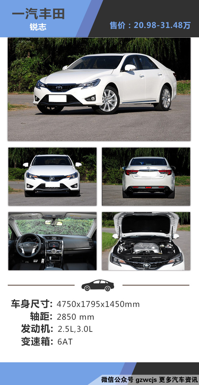 教授点评:锐志的前脸线条非常的犀利,整体不再平庸,进气格栅的两条镀铬饰条与不规则的大灯一体化的设计还是具有不错的视觉效果,镰刀形结构的大灯视觉非常的锐利,而侧面的线条依然非常的流畅动感,到了车尾可以看到其设计非常的饱满,同为镰刀状的尾灯与前脸有很好的呼应;然后可以看到锐志的中控的设计比较保守,用料还是很用心的,不过其采用木质面板与四幅式的方向盘虽然显得很稳重但与其运动感十足的外观不太搭,同时其虽拥有2850mm的轴距,不过其车内的空间表现一般,特别后排地台隆起很高,乘坐的舒适差了很多。