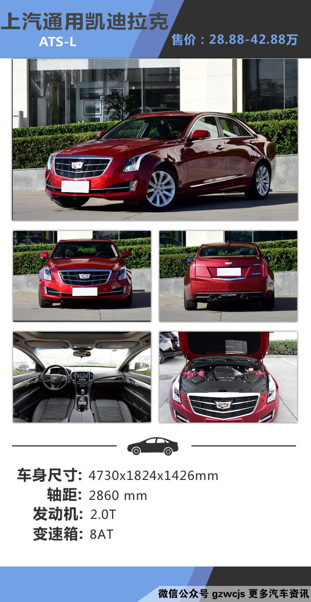教授点评:ATS-L采用凯迪拉克的钻石切割理念,整车非常的犀利,前脸大面的进气格栅与两条镀铬饰条相连视觉效果十足,下进气格珊的一条饰条延伸到左右两个进气格栅让其有了一些稳重感,同时雾灯造型与大灯机构设计感十足,整体有很好的呼应,还可以看到发动机盖隆起的线条很有肌肉感,而加长的车身也没有的很突兀,微微的上扬的腰身线条反而显得更加的协调,尾部的造型太大的变化,依然锋利好看;中控采用环绕式的设计,大量的缝线的应用于钢琴烤漆的饰板让整个内饰非常的豪华有质感,同时还可以看到全系标配了BOSE音响,对于喜欢音乐的消费者有福音了。