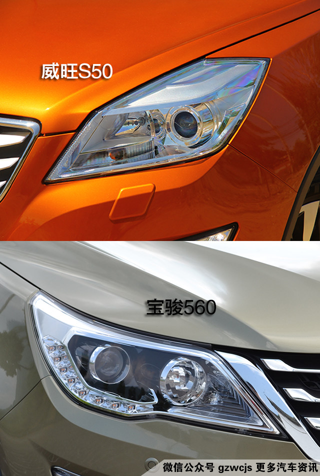 威旺S50与宝骏560的大灯都配有透镜,并带有日间行车灯。两车都配置有前后驻车雷达、倒车影像。