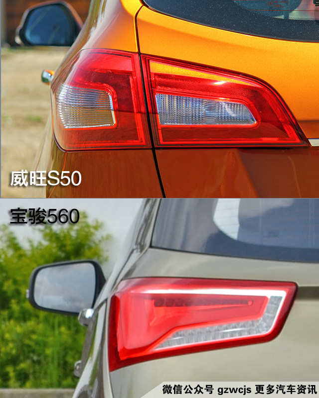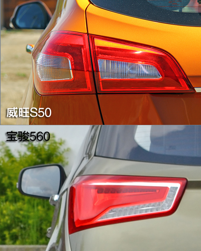 威旺S50尾灯与车身很好的衔接,其刹车灯采用LED光源,点亮呈现“双C”造型。而宝骏560的尾灯灯组更是采用全LED光源设计。