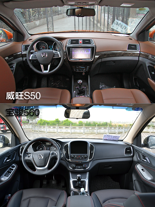 采用双色设计的威旺S50内饰风格偏向家居,与强调中控台设计的宝骏560形成鲜明对比。