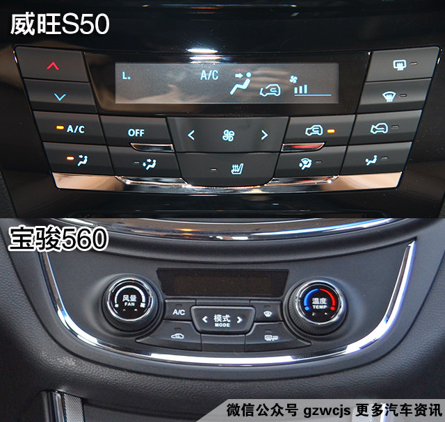 两款车均为手动的空调系统,威旺S50的按钮布局分明,而宝骏560则带有后排出风口。