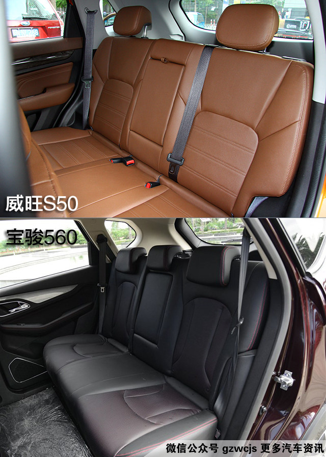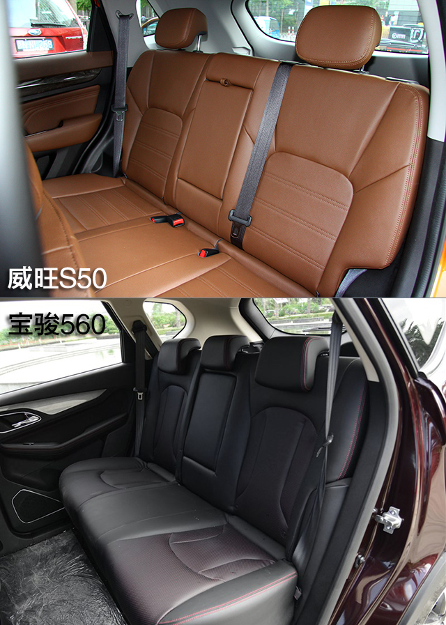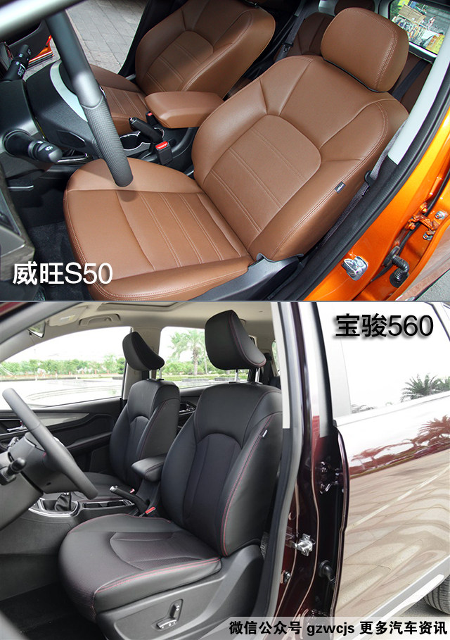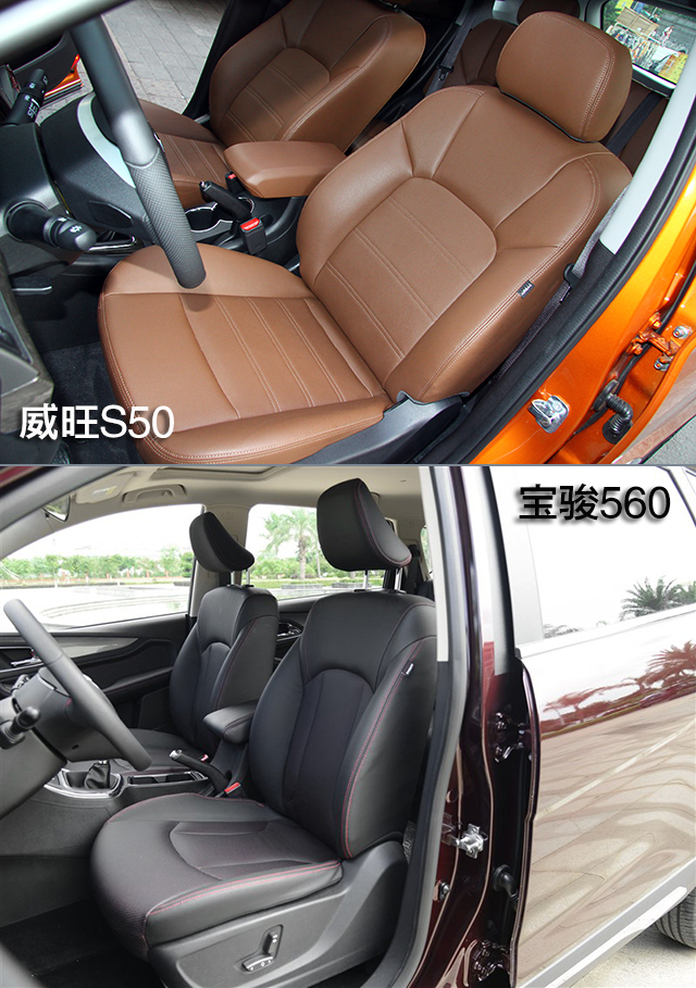 两款车均采用皮质座椅,威旺S50带有前排座椅加热功能,而宝骏560带有驾驶室座椅电动6向调节。