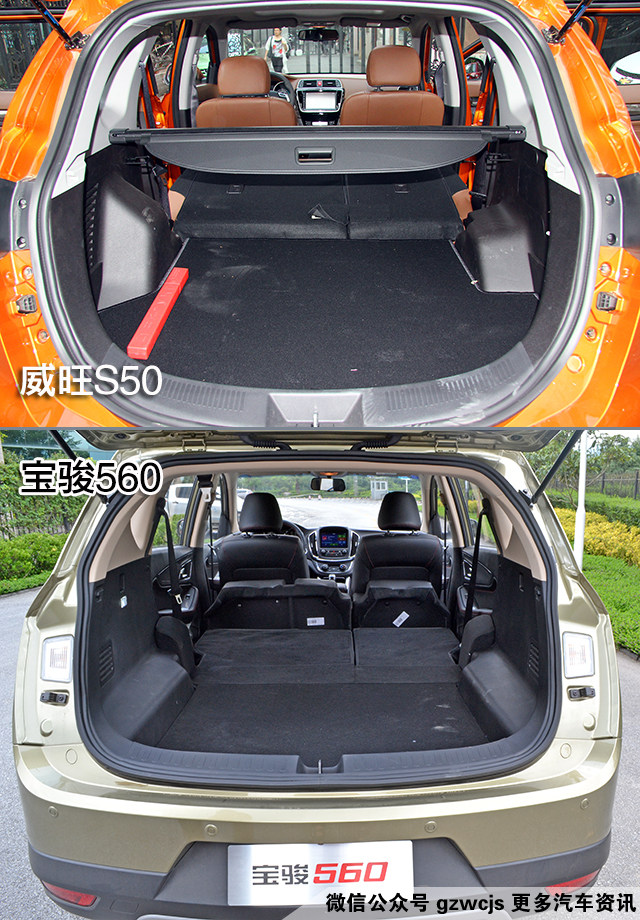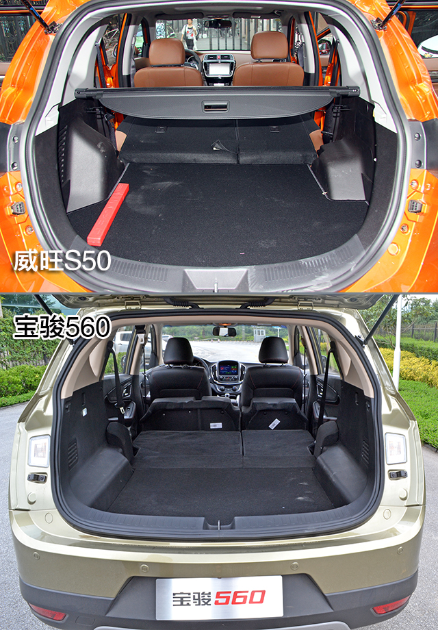 威旺S50的后备箱最大容积为1830L,宝骏560为1015L。看来威旺S50更具备“装”的资本。