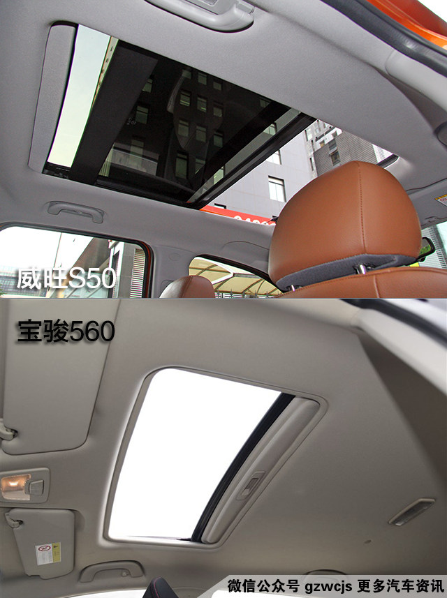 威旺S50配置的全景天窗是宝骏560所没有。