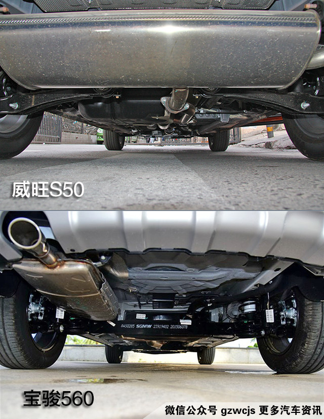 悬架方面,两款车均配置了前麦弗逊式独立悬架。但后悬挂方面,宝骏560配置扭力梁式非独立悬架,而威旺S50配置的多连杆独立悬架在同级别车型中属豪华配置,这点值得点赞。